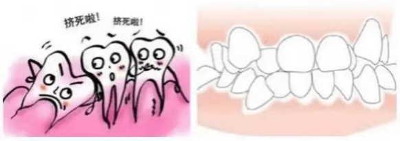 牙列不齐,俗称大龅牙,又叫牙列拥挤,在错合畸形患者中最为常见,60~70%的错合畸形患者中可见到拥挤的存在。造成牙列拥挤的原因为牙量骨量不调,牙量(牙齿总宽度)相对大,骨量(齿槽弓总长度)相对小,牙弓长度不足以容纳牙弓上的全数牙齿。